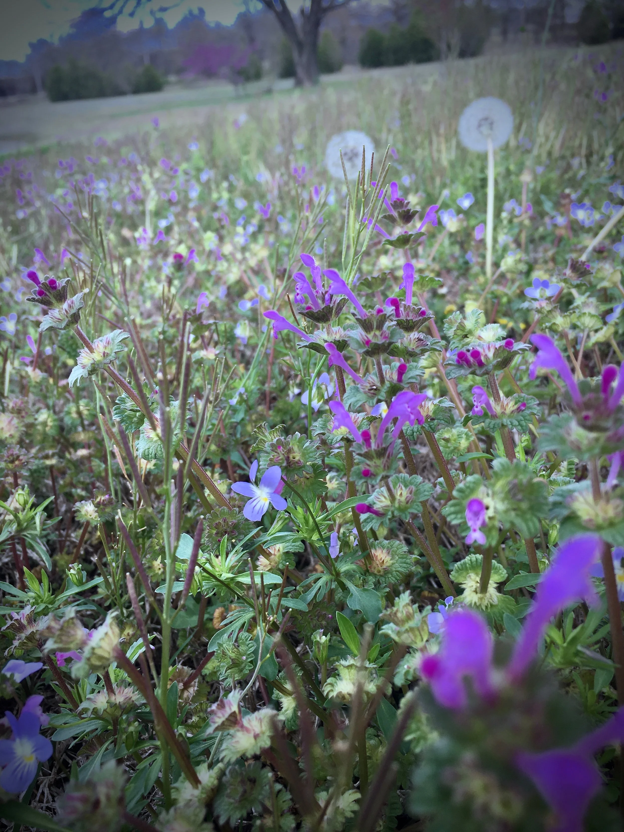 I snapped this during a brief walk in my neck of the woods. Spring has pushed back winter once again and, to celebrate, God said, ‘Let there be purple.’